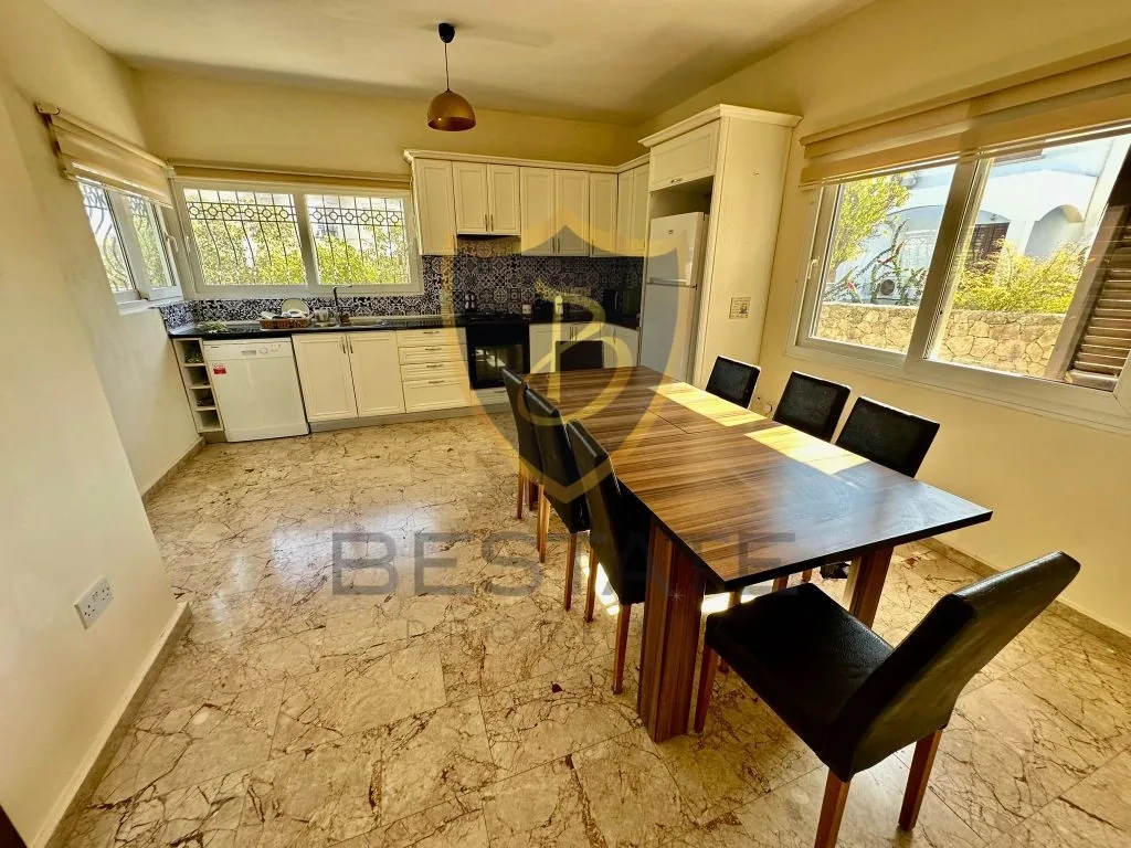 Located in a quiet and exclusive area after the Elexus Hotel in Kyrenia, this 3+1 rental villa is an ideal option for those looking for a comfortable life with its large living space, private garden and pool.