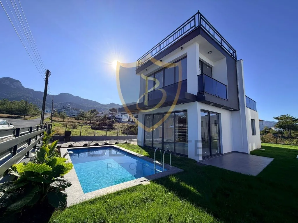 استخر خصوصی لوکس با فرصت تحویل فوری ویلای 3+1 برای فروش در چاتالکوی، گیرنه!!