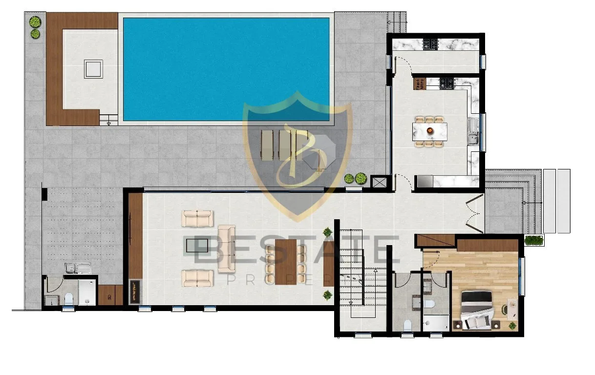 • محیط نشیمن با طراحی ویژه نمای شرقی استخر