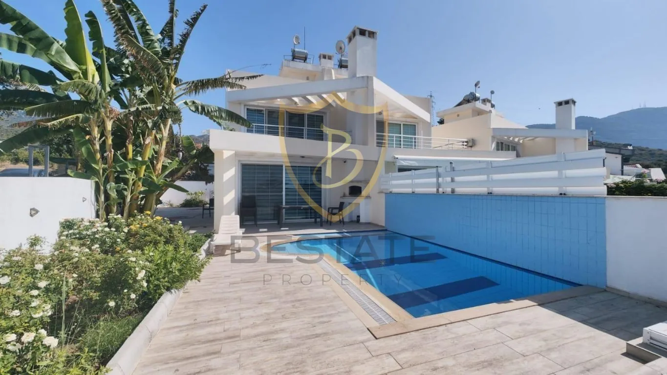 GİRNE ALSANCAK'TA DAĞ VE DENİZ MANZARALI, OZEL HAVUZLU SATILIK 3+1 VİLLA !!