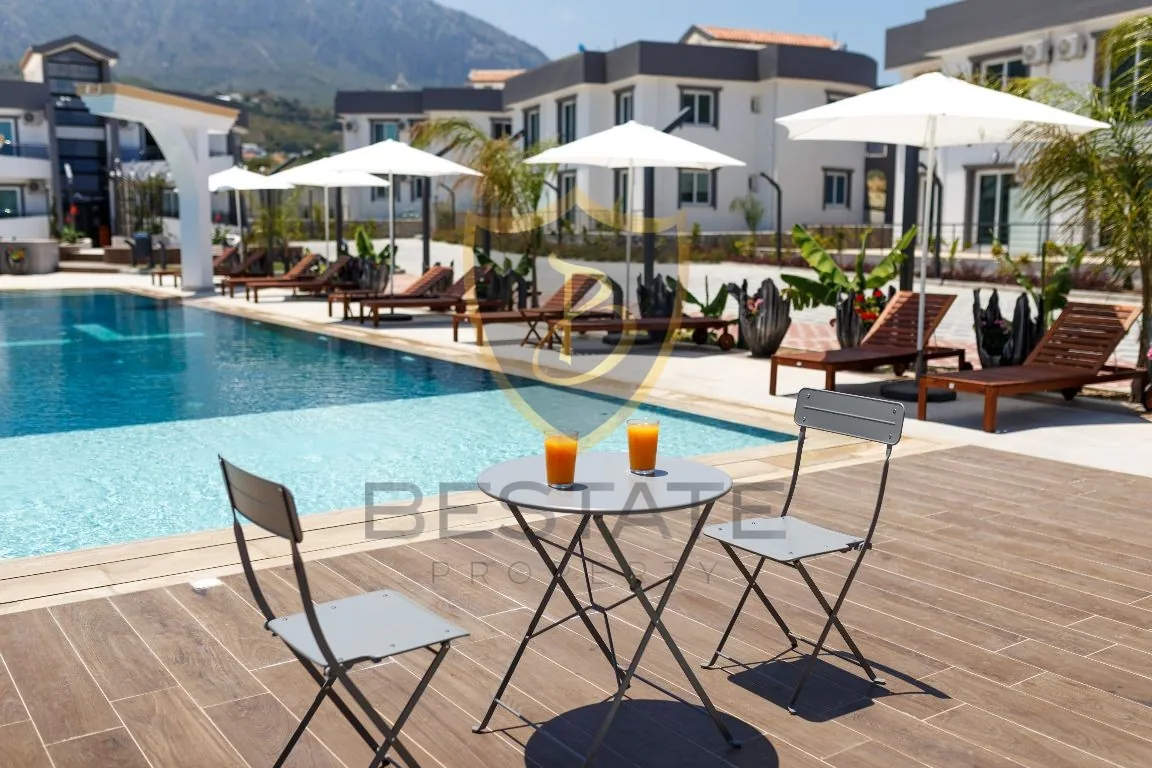 Girne’nin en çok tercih edilen bölgelerinden Karaoğlanoğlu'nda GAÜ'ye yakın konumda yer alan bu modern ve full eşyalı 1+1 daire, çağdaş Akdeniz yaşamının konforunu sunuyor.